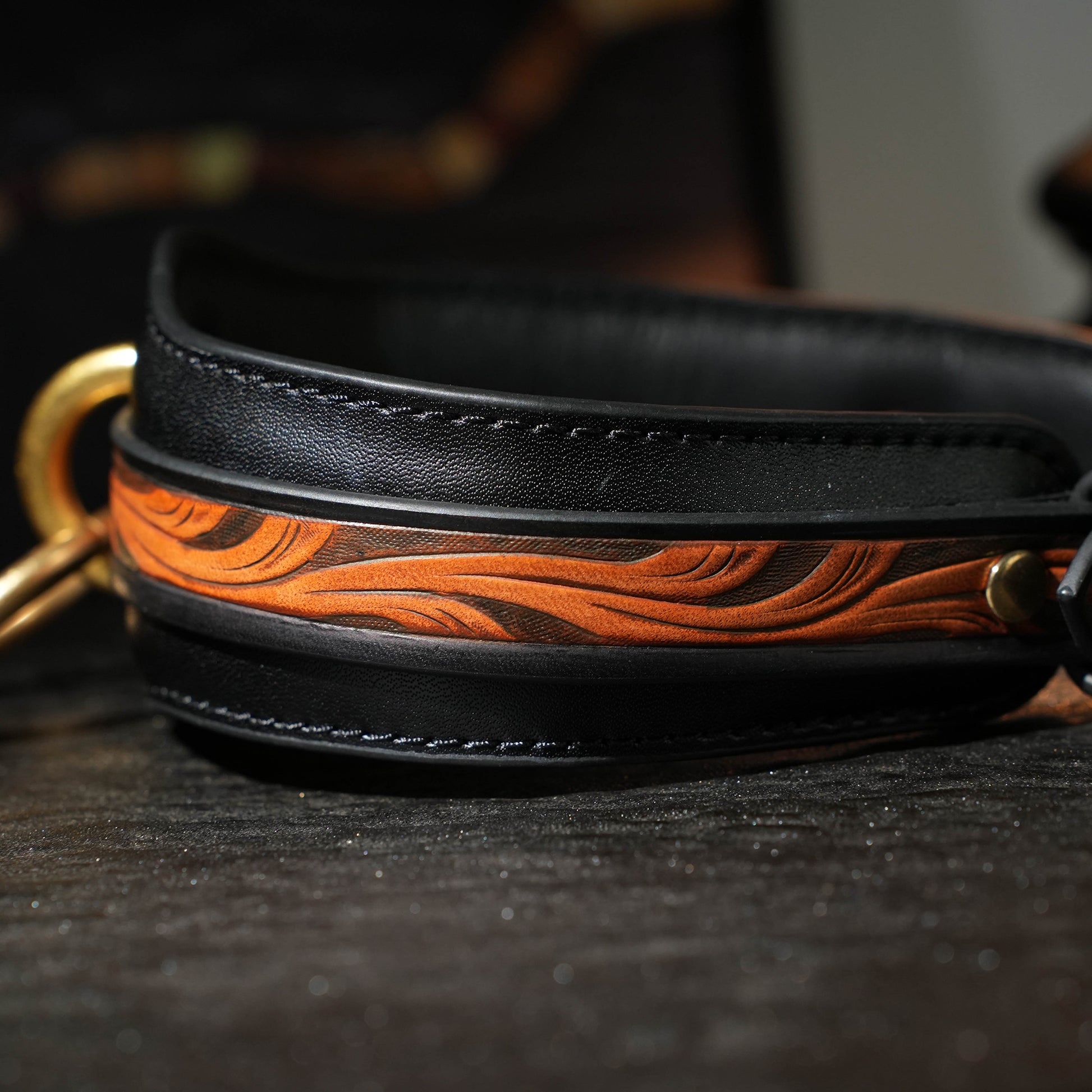 Carved Brown Engraved Collar With O Ring